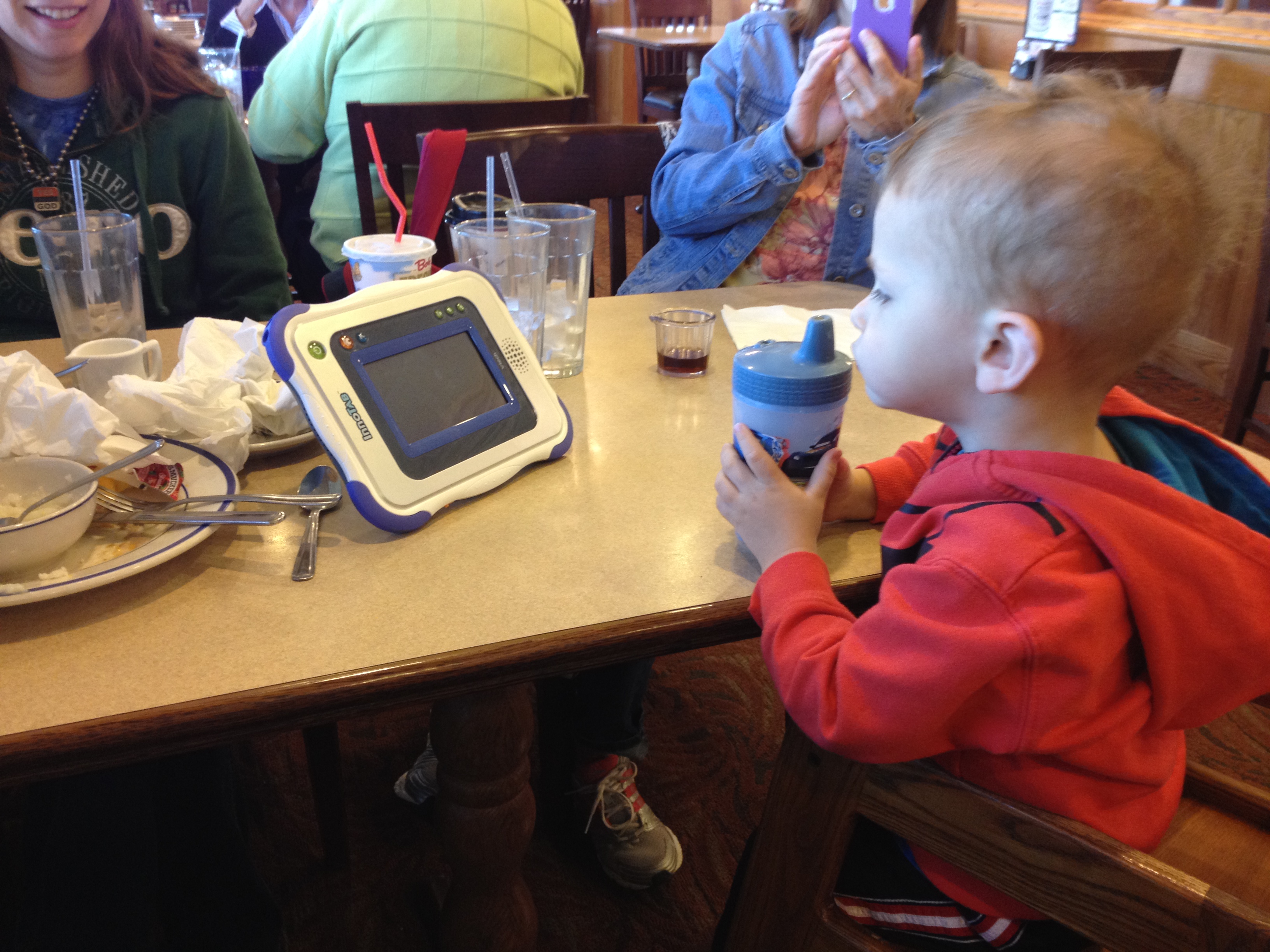 It has been a challenge for Tammy and I to go out to eat. Luke is so full of energy and just doesn't want to sit there for long especially in that high chair. Sometimes it seemed he would last until a